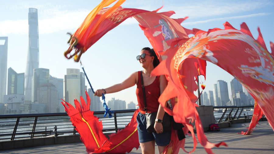 Когда туристы из Франции, России и Австралии встречают рассвет на набережной Вайтань в Шанхае, осваивая искусство танца дракона с шелковой лентой, когда итальянский видеоблогер надевает костюм для танца льва и встае...